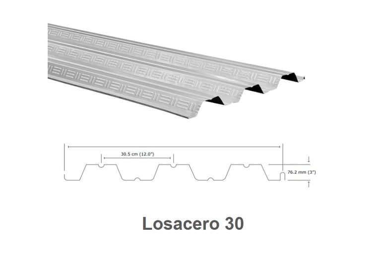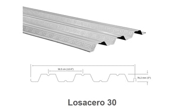 Nuestra Losacero sección 30 es una solución estructural de alta calidad, fabricada bajo las normas ASTM A653 y SS37. Su acabado galvanizado le brinda una excelente protección contra la corrosión, garantizando una larga vida útil y un bajo mantenimiento.